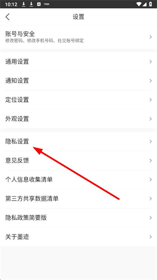 2、在设置页面中,找到隐私设置选项并点击,进入隐私相关设置界面。