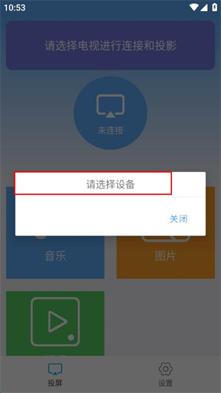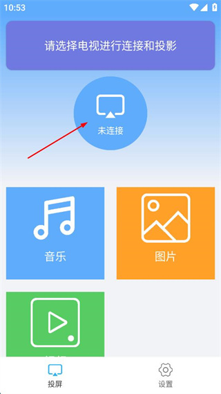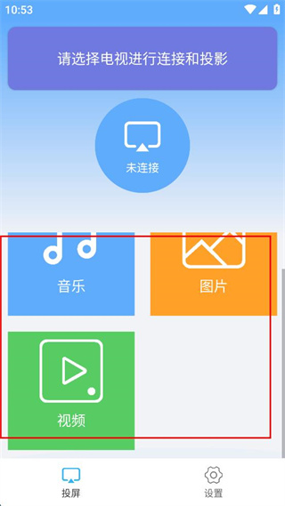 4、连接设备后,可在主界面选择音乐图片视频等选项,进行对应的投屏内容操作。