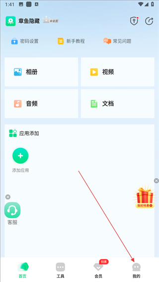 1、打开章鱼隐藏应用,点击右下角我的。