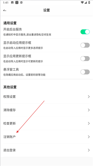 3、进入设置页面后,点击注销账户选项。