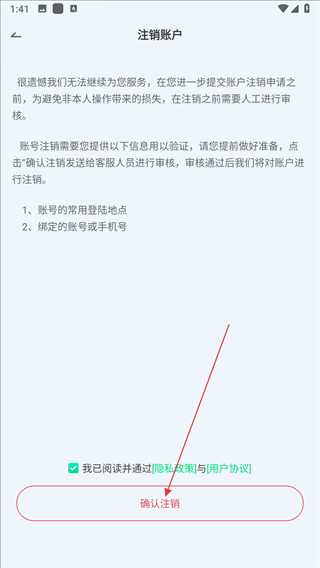 4、在注销账户页面,点击确认注销按钮。