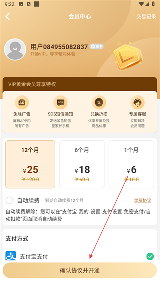 3、在会员中心页面里,选择目标会员时长,勾选支付方式,支付宝支付。