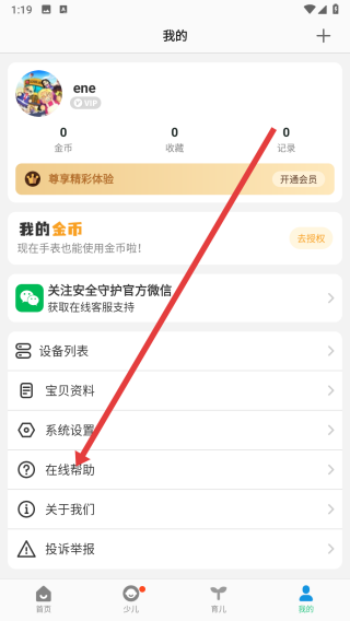 1、在进入到我的主页后,可以点击在线帮助选项,进入查看相关问题与解决方法。