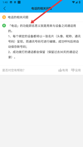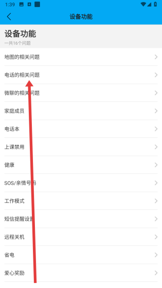 3、在进入到设备功能问题页面中,可以点击电话的相关问题选项,进入查看。