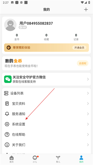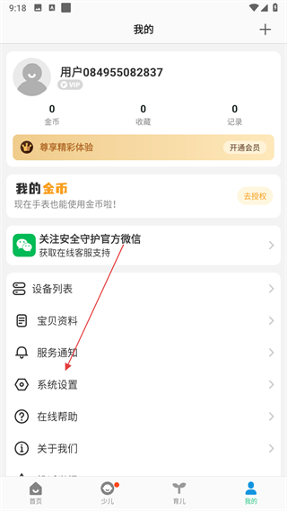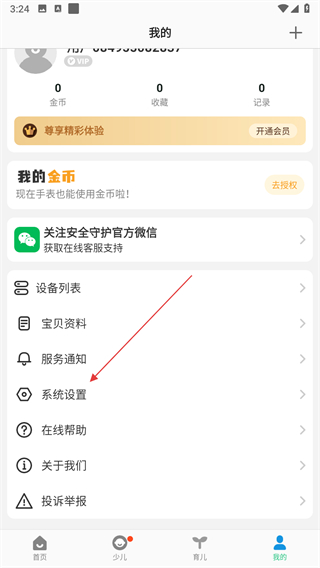1、打开安全守护应用,进入我的页面后点击系统设置。