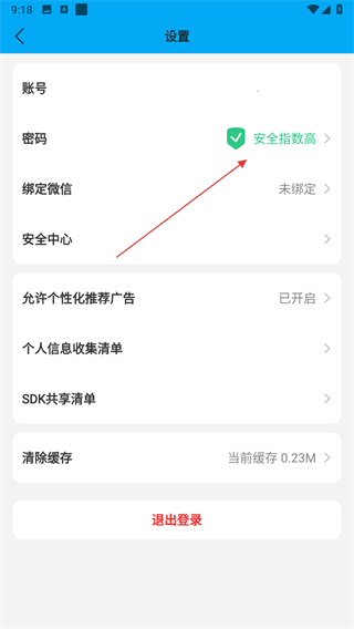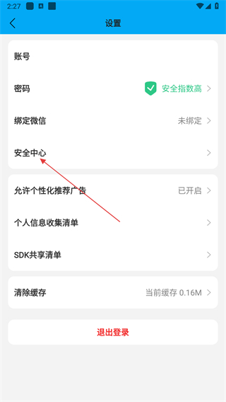 2、在设置页面,点击安全中心选项,即可进入中心页面。