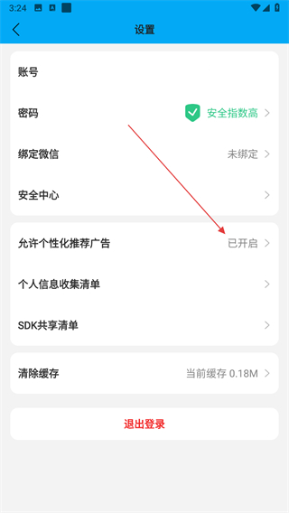 3、在设置界面里,选择允许个性化推荐广告,进入个性化推荐广告。