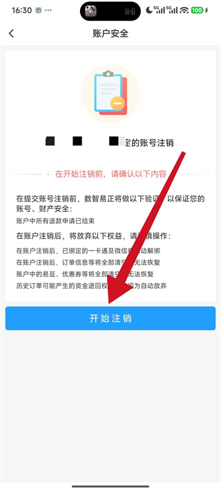 5、阅读注销相关提示后,点击开始注销,即可完成数智易正账号的注销操作。
