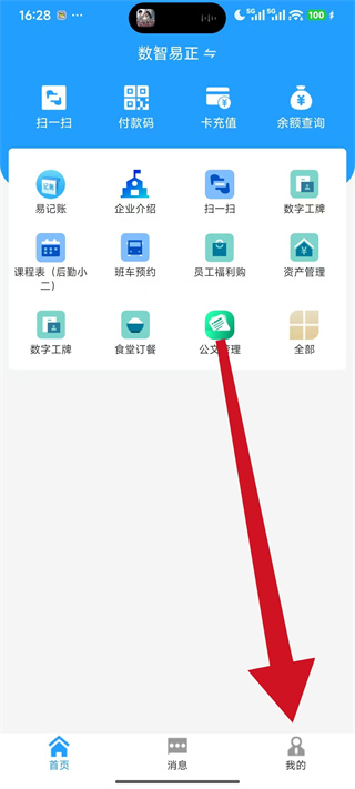1、打开数智易正APP,点击底部导航栏的我的,进入个人中心页面。