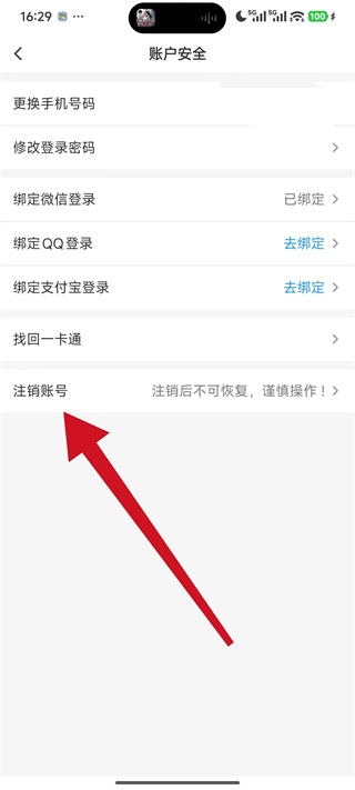4、在账户与安全页面找到注销账号,点击进入注销确认页面。