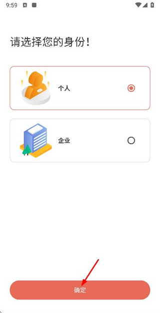 1、在身份选择界面选择个人点击确定,进入登录页面。