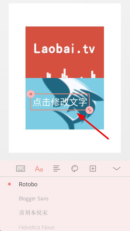 3、在海报编辑界面,点击下方带有Aa标识的文字功能按钮。