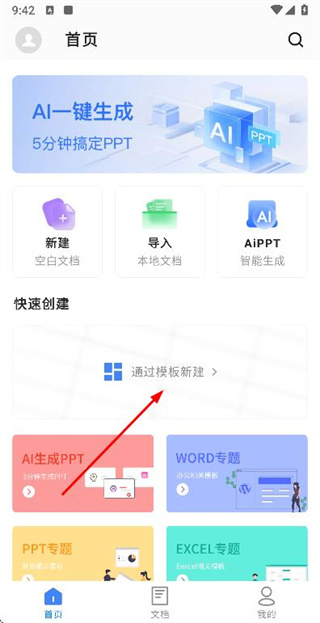 1、在首页点击通过模板新建选项,进入模板选择页面。