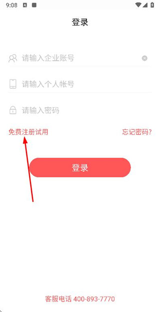 1、在登录页面点击免费注册试用,进入注册的手机验证页面。