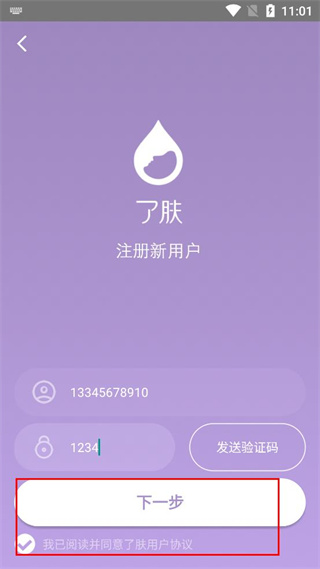 4、将收到的验证码填入对应输入框,勾选协议后点击下一步完成注册流程。
