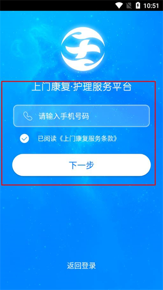 3、在注册页面输入手机号码,勾选已阅读服务条款后点击下一步,完成注册。