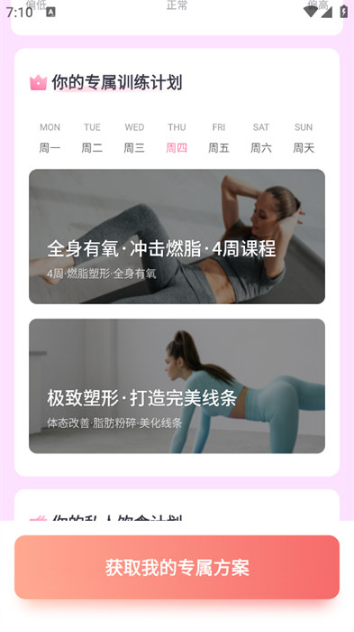 4、回答完问题之后就会为用户们呈现出专属的运动方案;