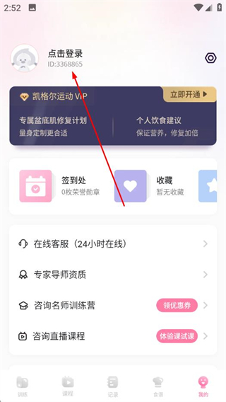2、在我的页面点击点击登录区域,进入登录注册页面。