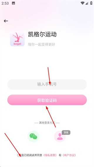 3、在登录注册页面勾选,输入手机号后点击获取验证码。