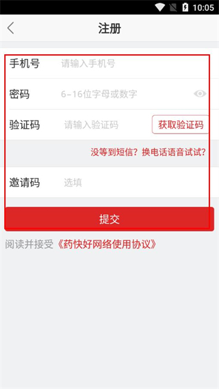 3、填写手机号码、设置密码,填写短信验证码,阅读并接受协议后点击提交。