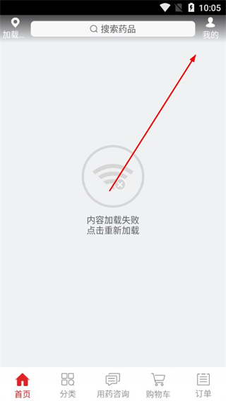 1、打开药快好app的首页,在页面右上角点击我的,进入登录页面。