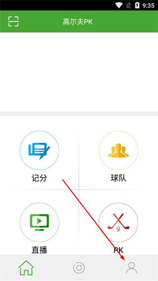 1、打开高尔夫PK app的首页,在底部导航栏点击我的选项,进入登录相关页面。