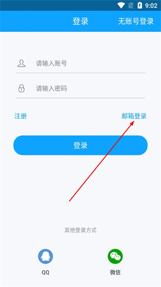 2、在登录页面中,找到邮箱登录选项并点击,进入邮箱登录的信息填写界面。
