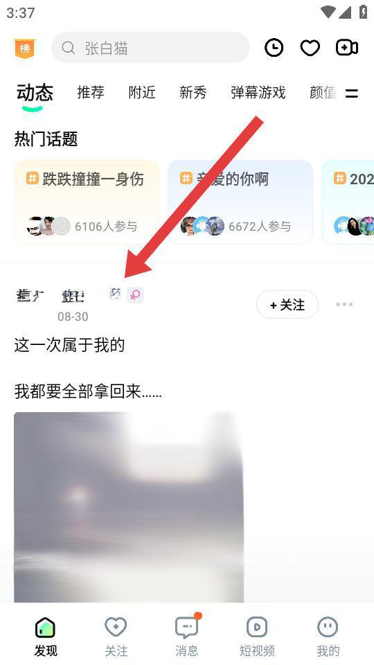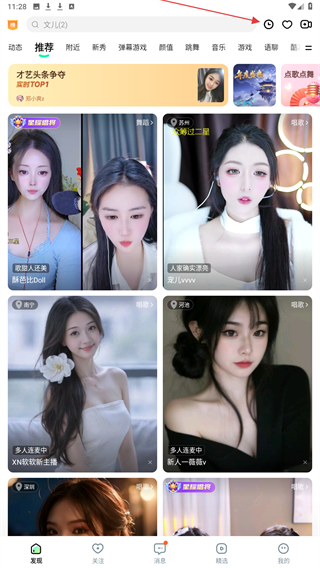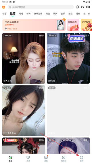 1、打开酷狗直播APP,在发现页面找到要拉黑的主播动态,点击进入主播个人的主页。