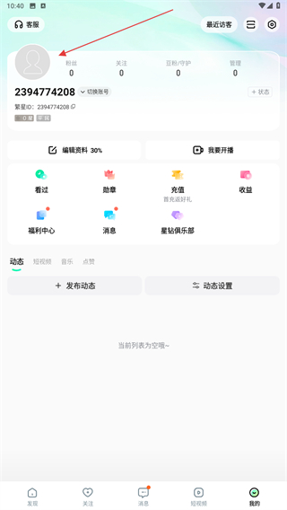 2、进入我的页面内,点击上方用户头像的区域位置。
