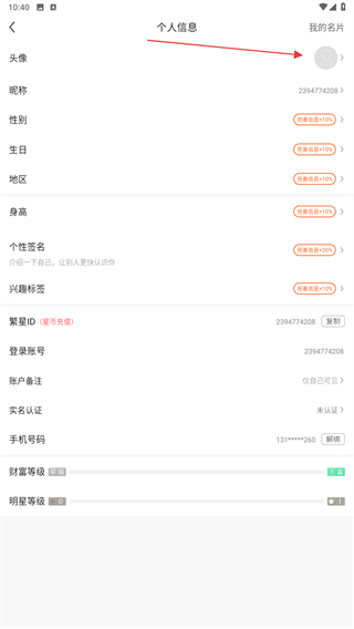 3、进入个人信息的界面内,找到并点击头像右侧人像按钮。