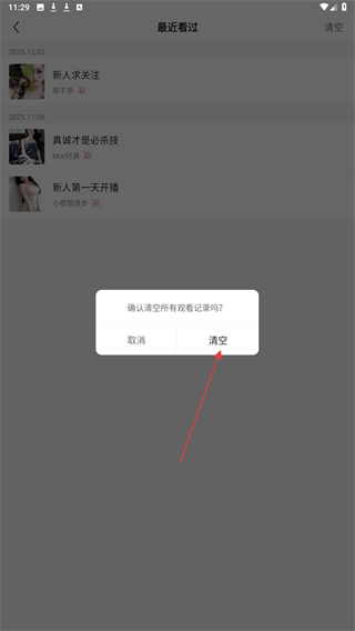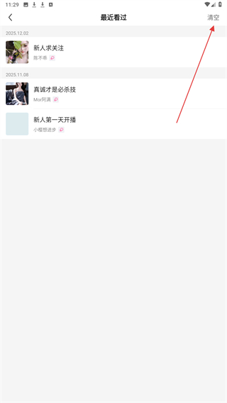 2、进入最近看过的页面内,点击右上清空的按钮。