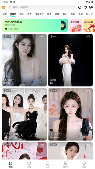 1、打开酷狗直播的APP,进入首页点击右下我的图标。