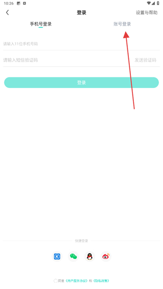 2、进入登录的界面内,点击上方账号登录的按钮。