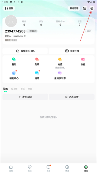 2、在个人主页内,点击右上角设置的功能按钮。