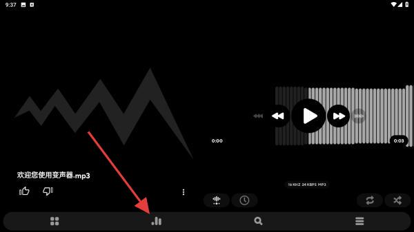 1、启动Poweramp,点击底部导航栏中间的音频图标,进入音频调节页面。