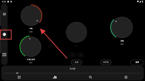 3、切换至第二个调节的页面内,可推动平衡、扩展立体声、音量的按钮。