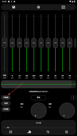 2、进入调节的界面内,在中间的区域进行拖动按钮来调节完美的音质。