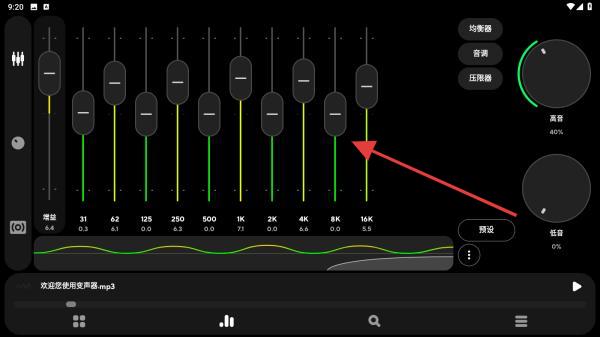 4、在调节界面内,拖动按钮向上或向下移动,调节出最适合的音调。