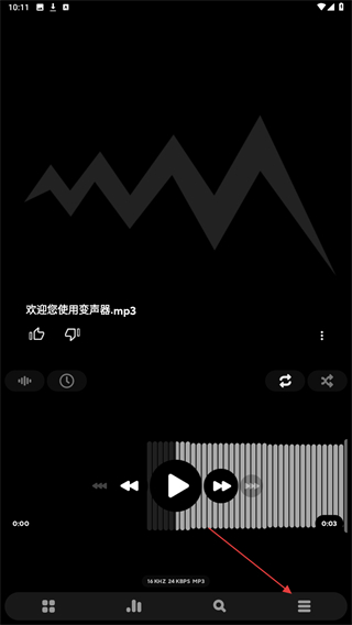 1、打开Poweramp界面,点击底部导航栏右侧的三条横线图标。