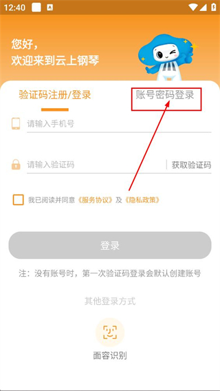 2、在登录选择页面,点击账号密码登录选项,切换至账号密码登录界面。
