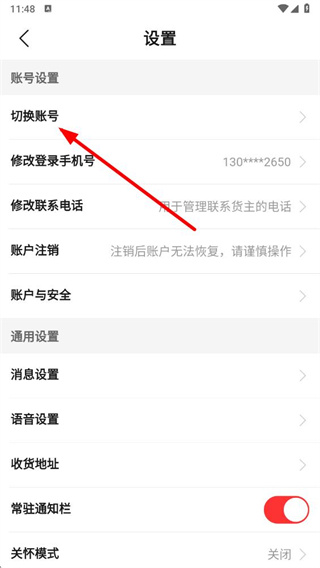 3、在设置页面,点击切换账号选项,进入切换账号登录页面。