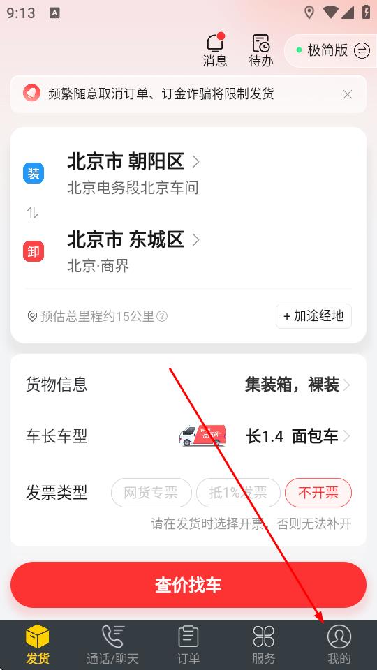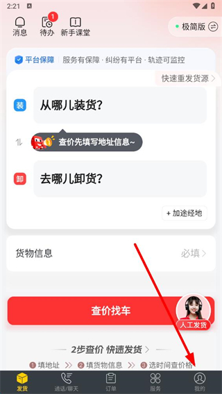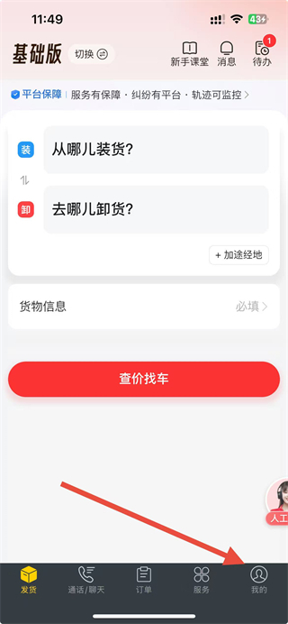 1、打开货车帮货主APP,点击底部导航栏中的我的。
