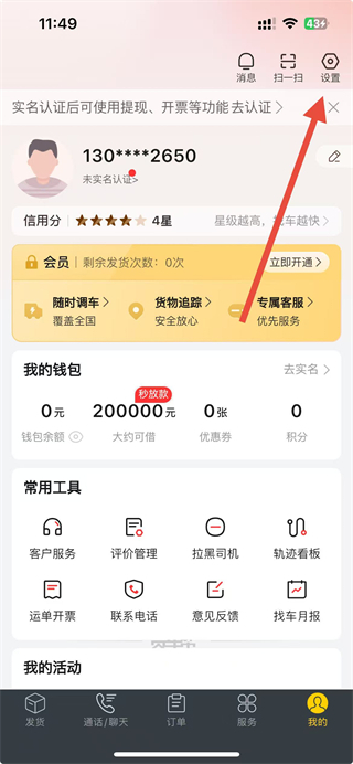 1、打开货车帮货主app,点击右下角我的选项,进入个人页面。