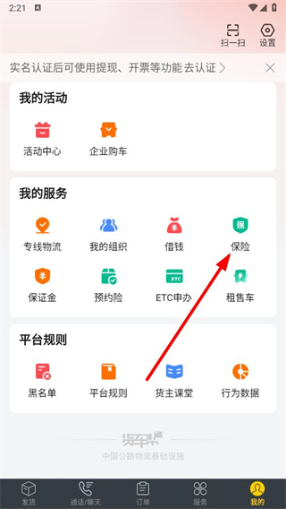 1、在货车帮货主app界面点击我的选项,进入个人相关页面。