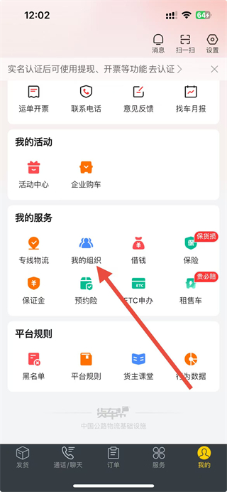 1、在货车帮货主app界面点击我的选项,进入个人相关页面。