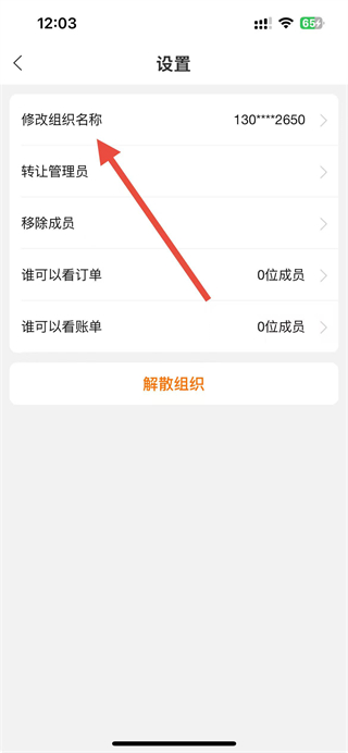 4、在设置页面点击修改组织名称选项,即可修改组织名称。