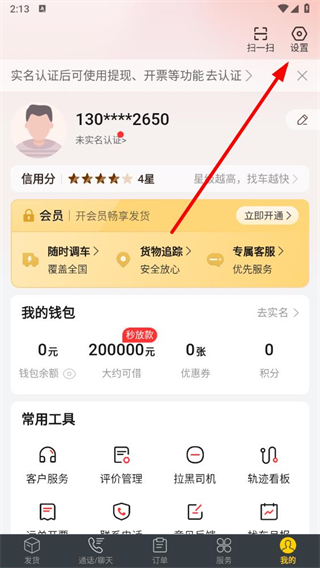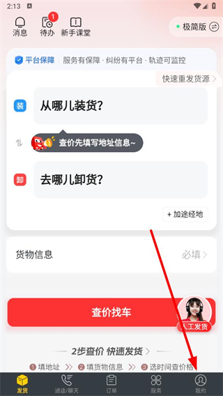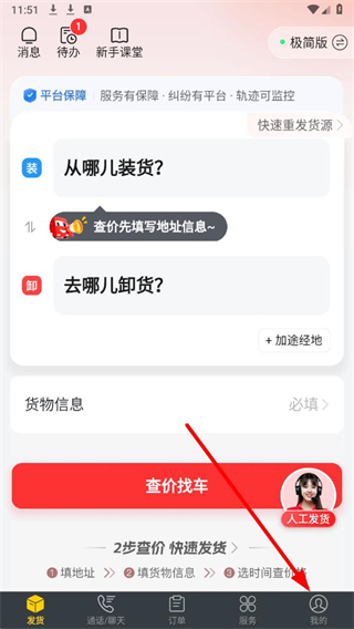 1、打开货车帮货主app,点击右下角我的选项,进入个人页面。