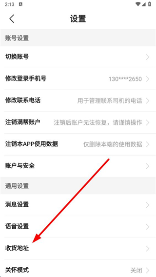 3、在设置页面,点击收货地址选项,进入收货地址页面。