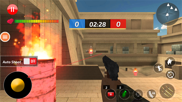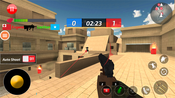 2、操控角色移动,瞄准敌方目标红色标识发起射击,积累击杀数。