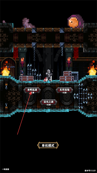 1、界面中可选择光明起源等区服,也可以点击单机模式,选择对应选项即可进入游戏的相应游玩模式。
